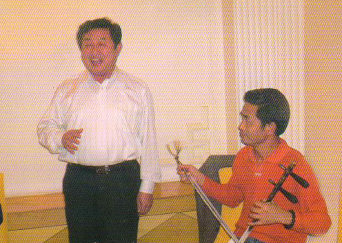 市文化局局长边茂田与康万生,翟萍即兴演唱